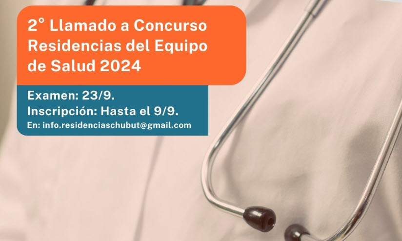 La provincia de Chubut abre una nueva convocatoria para cubrir cargos en las «Residencias del Equipo de Salud 2024». Este segundo llamado está dirigido a médicos y otros profesionales de la salud de todo el país, con el objetivo de fortalecer la atención sanitaria en la región. Las inscripciones estarán abiertas hasta el 9 de septiembre y pueden realizarse por correo electrónico.