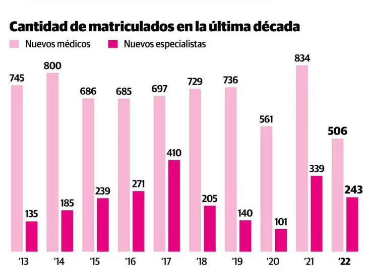 Durante 2021 se anotaron 339 nuevos especialistas. En 2022 la cifra cayó un 28,3 por ciento y se inscribieron 243 nuevos profesionales.