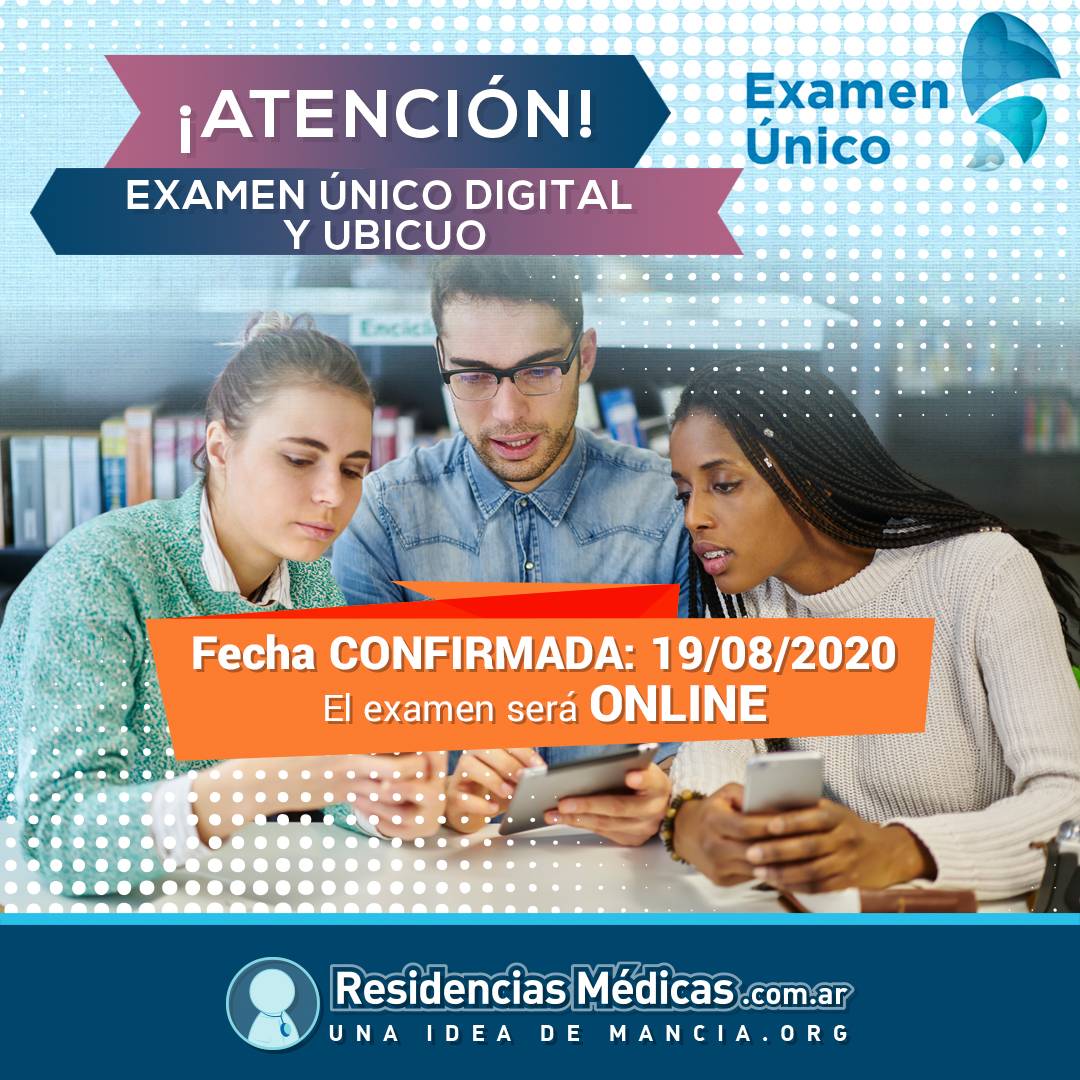 Este año a raíz de la suspensión del mismo en el mes de abril, el examen de residencias será ONLINE por primera vez en la historia, tomando el nombre de Examen Único digital y ubicuo