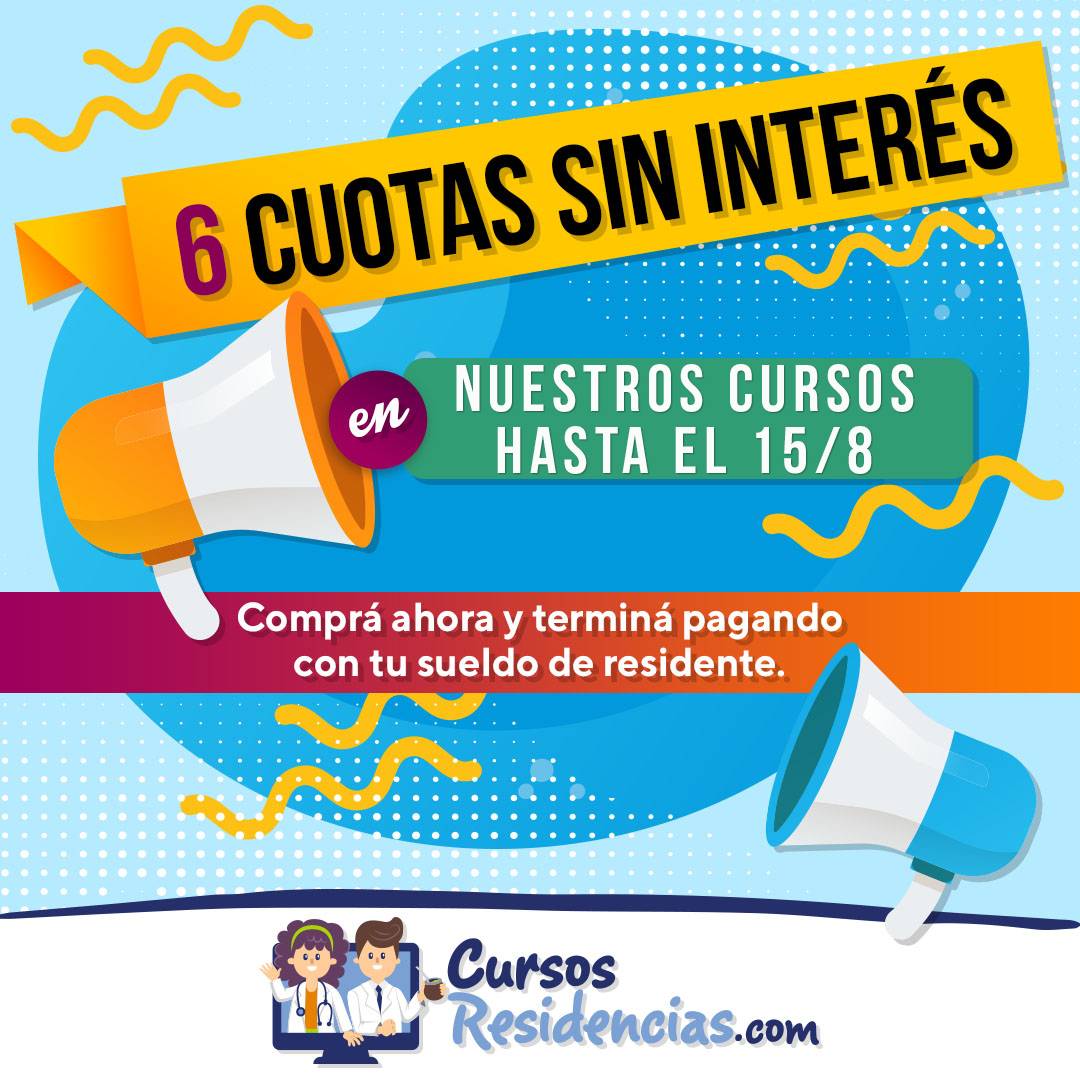 En CursosResidencias.com hasta el domingo 15/8 tendrás 6 cuotas sin interés en todos nuestros cursos de preparación para el examen de residencias médicas, de nutri, odonto, psicología, bioquímica y enfermería, tanto para 2021 como para 2022.